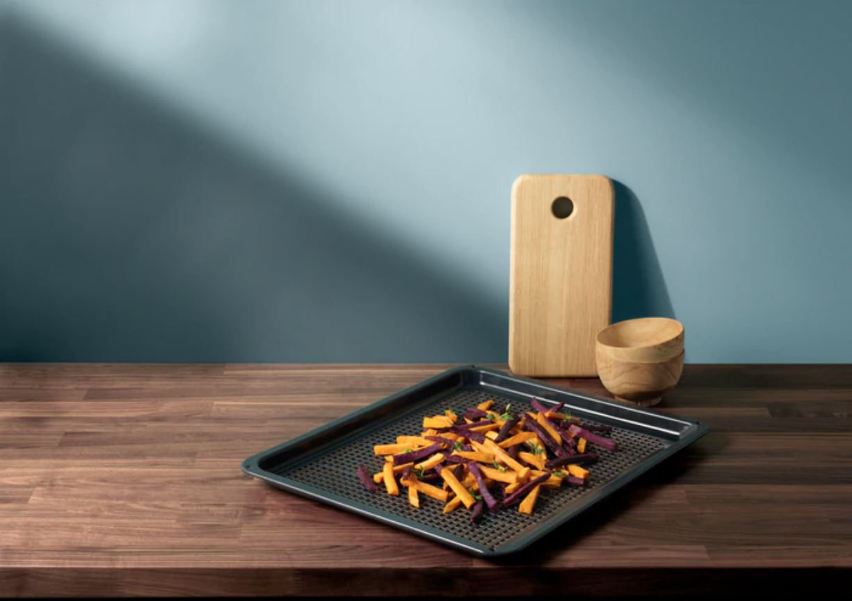 - Genießen Sie knusprige Pommes frites oder köstliches Gemüse mit weniger Öl dank des Electrolux AirFry Blechs. Es besitzt gleichmäßig angeordnete Löcher, die einen kontinuierlichen Luftstrom gewährleisten. So wird jede Speise perfekt gegart.